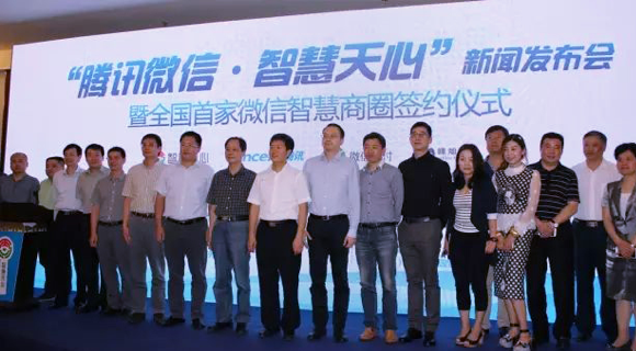 2015年6月,全国首个微信“智慧商圈”项目——“智慧 天心”在长沙五一商圈正式启动,项目由湖南省长沙市 天心区政府、腾讯微信支付和盛灿科技联合推出,是 湖南省 “互联网+商业服务体系”落地的重点标杆项目。利用微信公众帐号、iBeacon、微信Wi-Fi,微信支付 等工具和手段,智慧商圈体系加强了对城市现有商业 的整合、改造,优化资源配置,提升城市整体的商业 服务能力。
